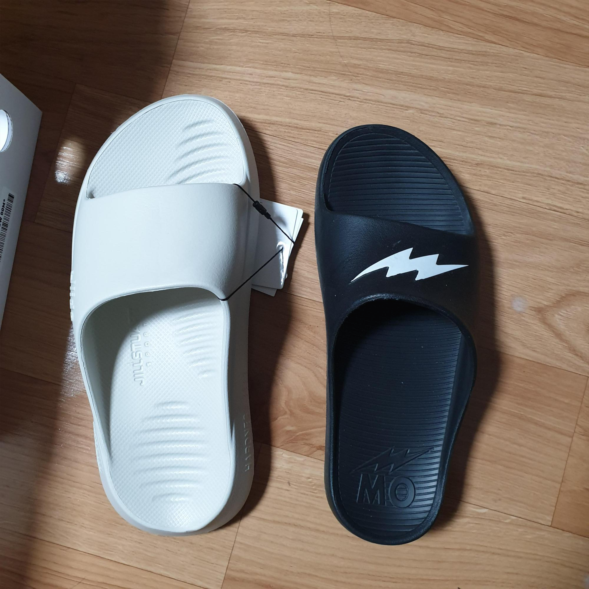 모스포츠와 비교했을 때 두께는 비슷해 보인다. 하지만 모스포츠는 둥근형태라면 질스튜어트의 슬라이드는 바닥이 평평하다. 모스포츠는 걸을 때 이 굴곡이 걷기 편하게 느끼게 만들어준다면 질스튜어트의 슬라이드는 평평해 안정감을 준다.